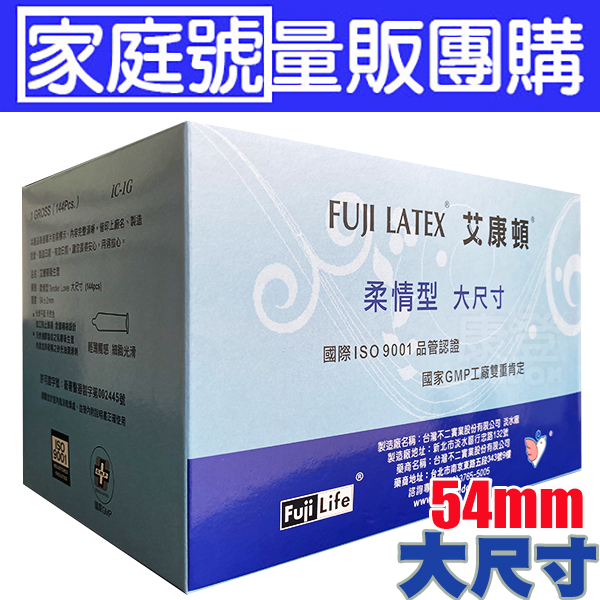 不二icondom 54mm加大尺寸保險套 (一盒144枚入)