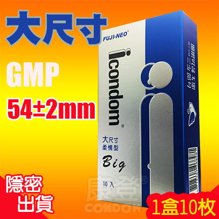 不二icondom 54mm加大尺寸保險套 一盒10枚入
